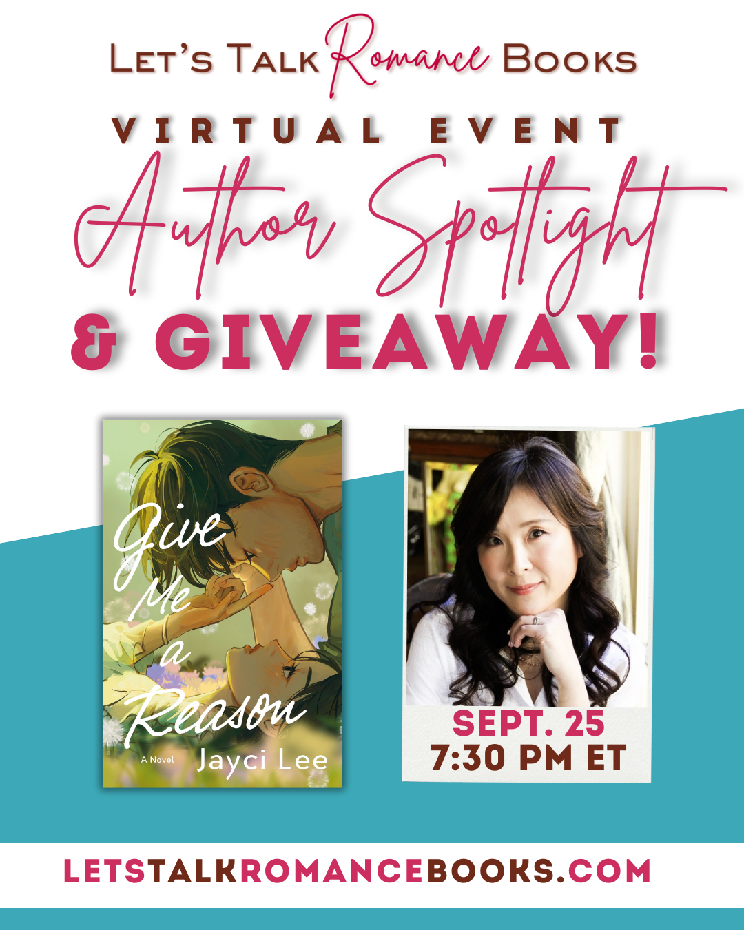 Meet & Greet USA Today Bestselling Author, Jayci Lee, author of Give Me a Reason, on September 25th at 7:30 pm ET!